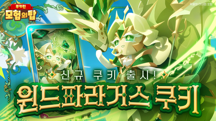 이번 업데이트에서는 ‘쿠키런: 모험의 탑’ 첫 레전더리 쿠키인 ‘윈드파라거스 쿠키’가 추가됐다. 바람 속성의 마법형 스트라이커인 이 캐릭터는 기본 공격으로 최대 3연타를 가하며, 차지 공격으로 전방 회오리를 일으킨다. 특수 스킬 ‘간절한 바람의 기도’는 지정 범위에 ‘공존의 숲’을 생성해 적을 끌어당기고, 궁극기 ‘영원한 약속’은 거대한 용 아르고를 소환해 강력한 피해를 입힌다. 또한 패시브 효과 ‘창공을 가르는 자유’를 통해 적의 속성 내성을 낮추는 효과를 중첩해 피해량을 증가시킨다.