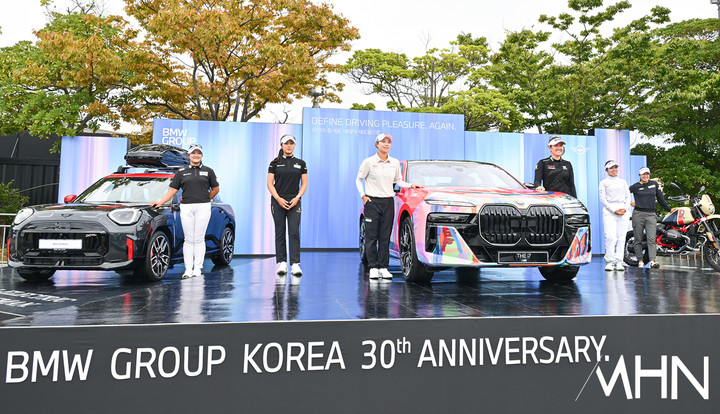 [mhn포토] '이색 BMW 앞에서 포토타임 갖는 선수들'