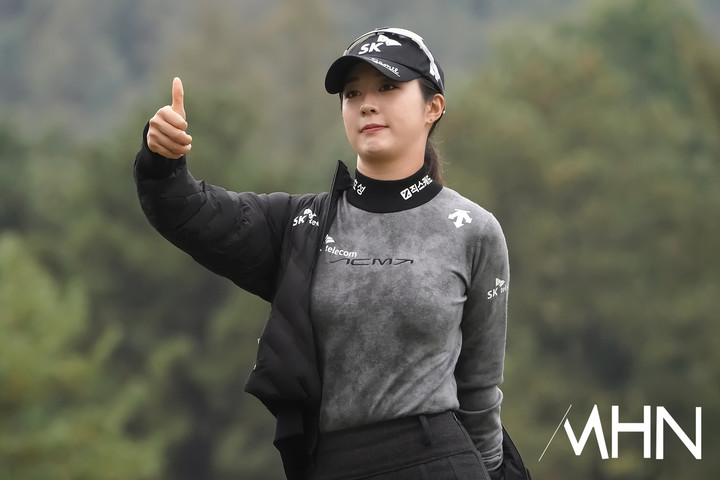 [mhn포토] 김재희, 버디 성공 후 팬클럽에게 엄지 척
