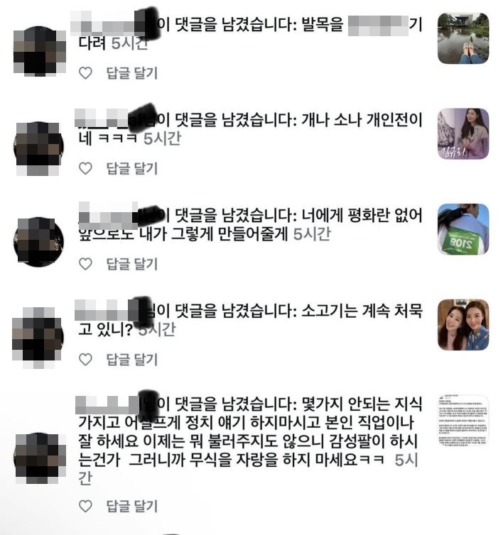 그러면서 몇년 전 악성 댓글 관련 형사고소한 사건이 있었다며 "조용히 있는것이지, 가만히 있는 것이 아니라는 점 다시 한번 상기시켜 드린다"고 말했다.