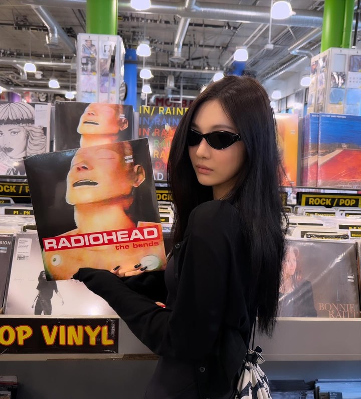 블랙 톤 의상과 선글라스, 그리고 비닐 레코드숍에서의 컷은 레트로하면서도 쿨한 무드를 자아냈고, 퍼 베스트와 스포티한 캡모자로 연출한 룩은 자연스러운 데일리 감성을 더했다.