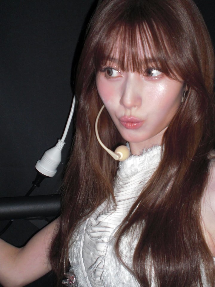 또한 긴 웨이브 헤어와 핑크빛 메이크업이 어우러져 한층 더 여성스럽고 고혹적인 분위기를 자아냈다. 무대 뒤에서도 빛나는 비주얼로 다시 한 번 레전드 비주얼을 갱신했다.