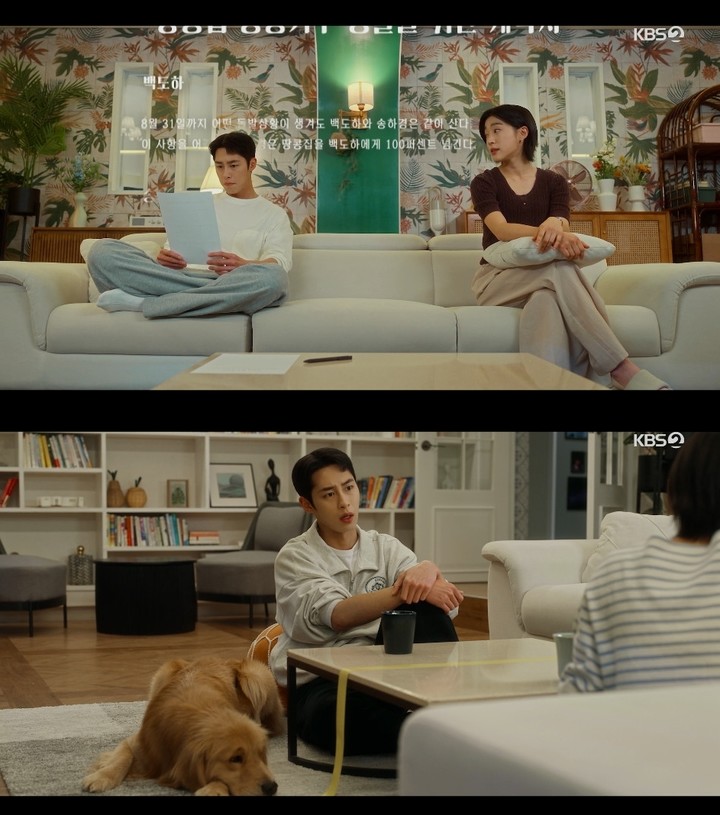 이날 방송에서는 도하와 하경의 좌충우돌 동거 생활이 펼쳐졌다. 도하는 하경에게 땅콩집 동거 계약서를 제안했다. 도하의 계약서를 확인한 하경은 다음 날 세부 조항을 빼곡하게 작성해 전달했고, 우여곡절 끝에 두 사람의 계약서가 완성됐다.