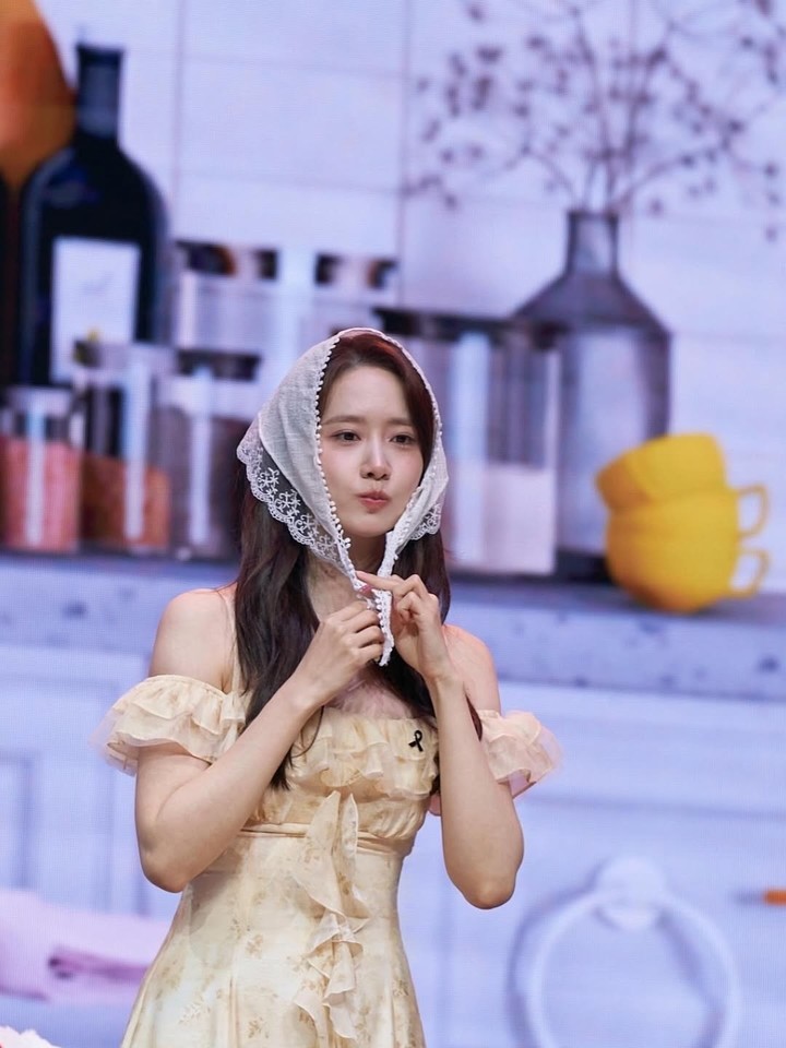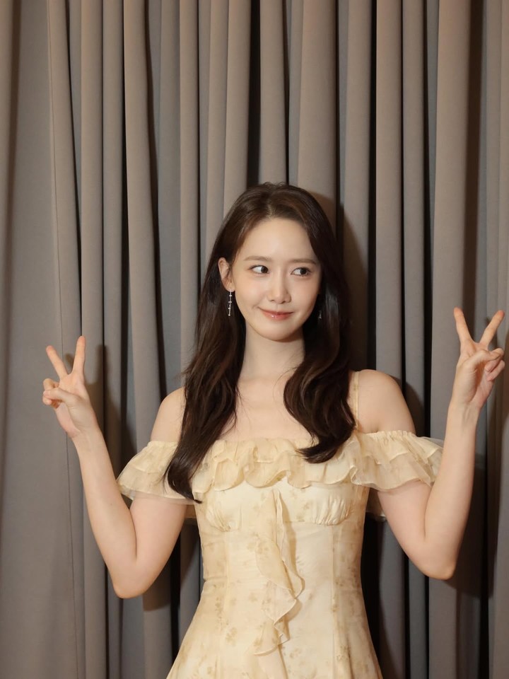 살랑이는 러플 장식이 더해진 드레스 실루엣은 임윤아의 슬림한 허리라인을 강조하며, 전체적으로 청순하면서도 고급스러운 무드를 완성한다.