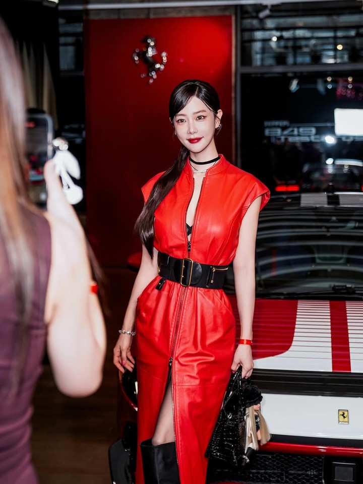 공개된 사진 속 클라라는 지퍼 디테일이 돋보이는 레드 레더 드레스에 와이드 벨트를 더해 잘록한 허리 라인을 강조했고, 깊게 들어간 슬릿과 블랙 롱부츠로 롱&슬림 실루엣을 완성해 시선을 사로잡는다.