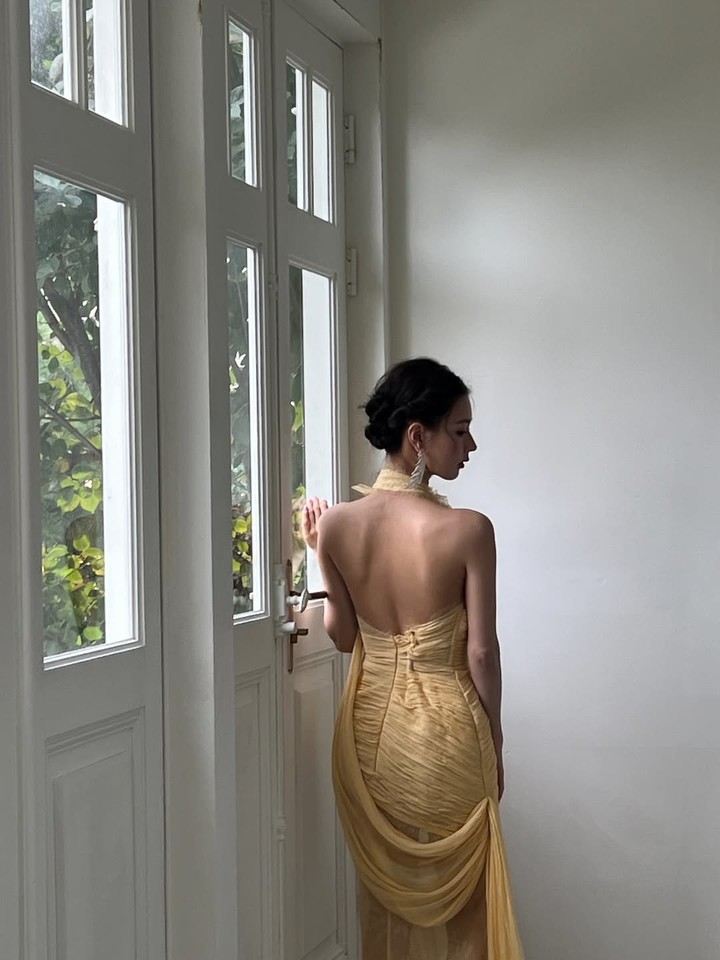 특히 빛이 스며드는 창가에서 포착된 미연의 뒷모습은 드레스가 흐르듯 떨어져 ‘판타지 영화’ 속에 들어간 듯한 분위기를 자아냈다.