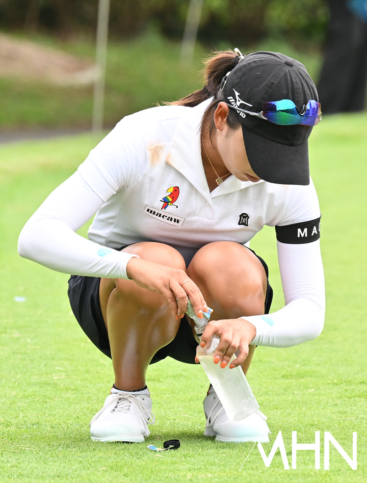 [mhn포토] 브룩 핸더슨 캐디 '바람이 좀~'