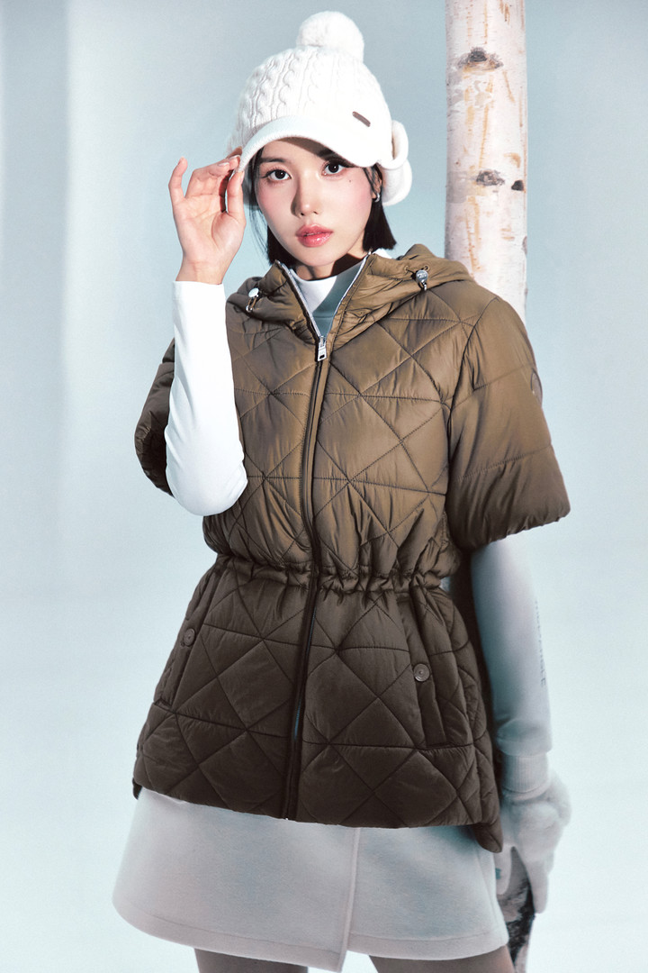 화보 속 권은비는 시어링 믹스매치 반팔 다운을 착용해 포근한 양털 플리스와 은은한 펄감 소재가 어우러진 하이브리드 다운 스타일을 선보였다. 이너로 매치한 겨울 하프넥 기모 베이스레이어는 부드럽고 신축성 높은 원단으로 보온성과 편안함을 동시에 확보했으며, 함께 스타일링한 울라이크 플리츠 큐롯은 고급스러운 외관과 부드러운 소재감으로 필드와 일상 모두에서 활용 가능한 윈터 포인트 아이템이다.