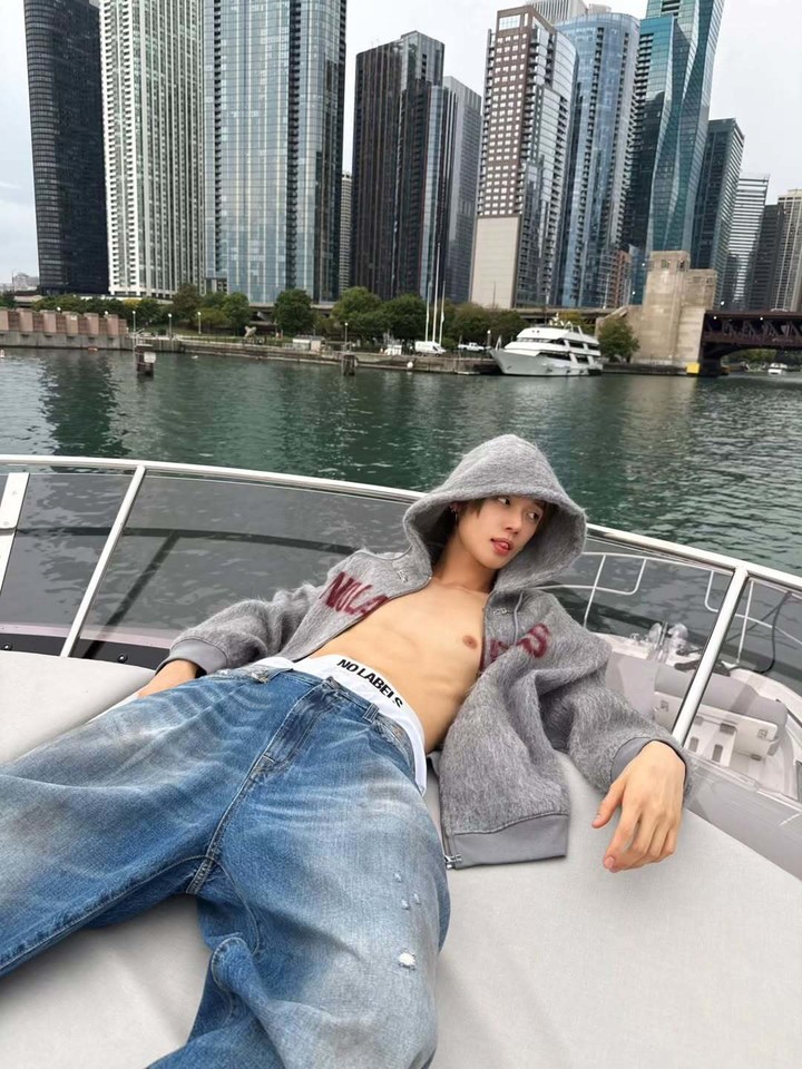 다른 사진에서는 상의를 탈의하고 드러낸 완벽한 복근 라인으로 시선을 단번에 사로잡았다.
