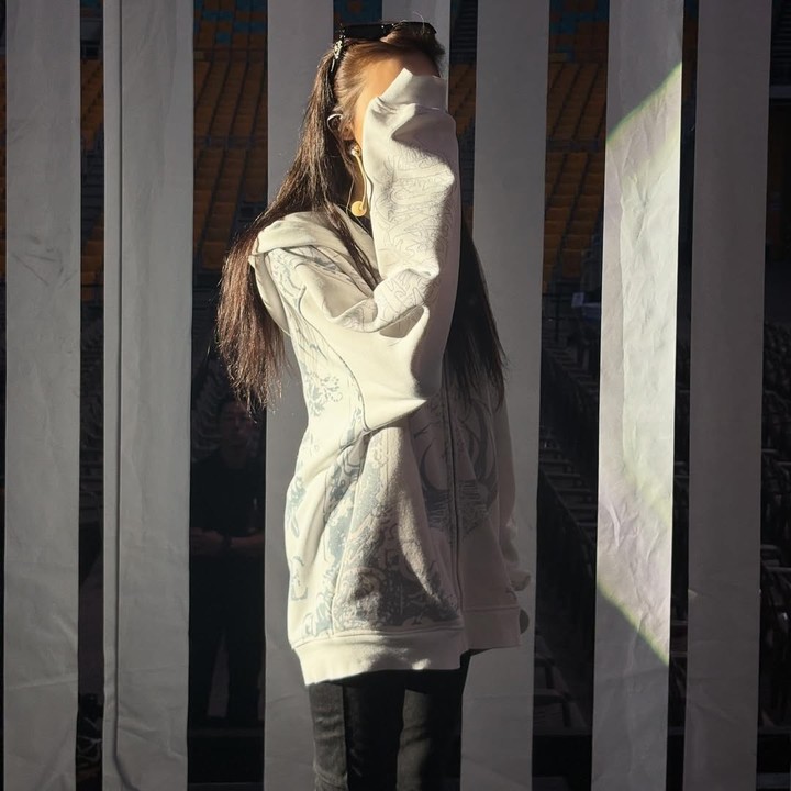 또 다른 컷에서는 강아지 필터를 사용한 셀피로 러블리한 반전미를, 오버사이즈 후드로 얼굴을 살짝 가린 채 쿨한 무드를 연출했다. 캐주얼과 시크를 오가는 콘셉트가 지젤 특유의 자유로운 감성을 드러낸다.