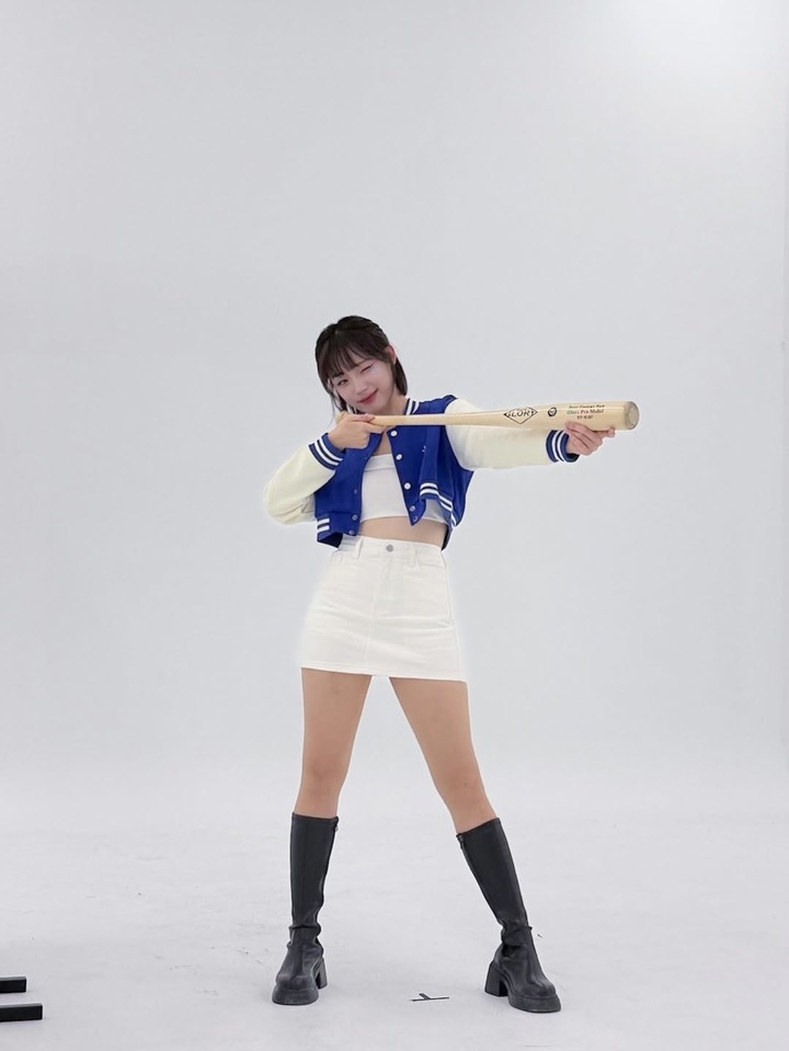 특히 무릎 위로 시원하게 드러난 라인과 블랙 롱부츠가 어우러지며 탄탄한 꿀벅지 실루엣을 강조, 스포티하면서도 매력적인 응원룩을 완성했다.