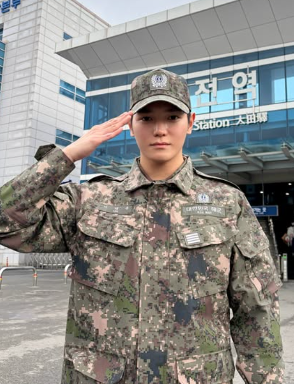 한편 태용은 지난해 4월 15일 해군 군악의장대대 홍보대 문화홍보병으로 입대해 이날 만기 전역했다.