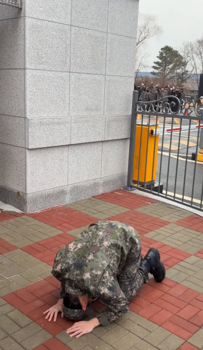 특히 대전역 앞에서 교묘하게 '대'자를 가리며 얼굴 뒤로 '전역'이라는 글자만 남게 만드는 센스로 눈길을 끌었다. 또한 부모님께 진한 포옹과 큰절로 인사를 올리기도 했다.