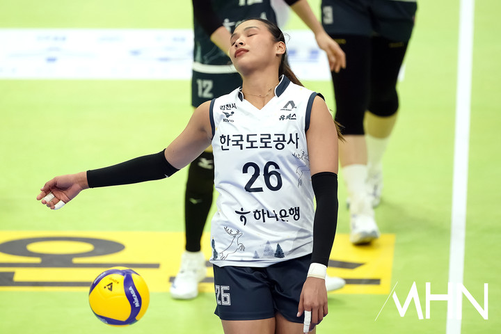 어수선한 분위기 속에서 맥 없이 1세트를 내준 도로공사는 2세트 초반 부상위기까지 맞이했다. 선수끼리 동선이 꼬여 이윤정이 바닥에 넘어진 것. 다행히 이윤정은 자리를 털고 일어나 다시 경기에 임했다.