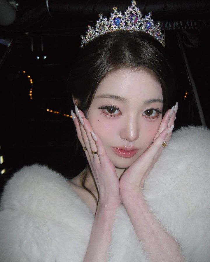 공개된 사진 속 그룹 아이브 장원영은 반짝이는 티아라와 화이트 퍼, 순백의 드레스 조합으로 ‘겨울 공주’ 스타일을 완성하며 고급스러운 무드를 드러냈다.