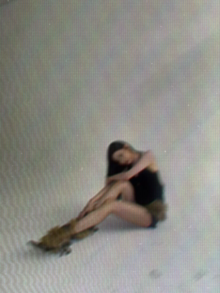 바닥에 앉거나 몸을 길게 뻗는 동작에서도 표정은 차분하게 유지해 쿨한 콘셉트를 찍었다. 빈 배경과 거친 필름 질감이 어우러지며, 닝닝 특유의 시크한 분위기가 더 짙게 살아났다.