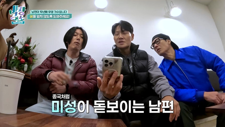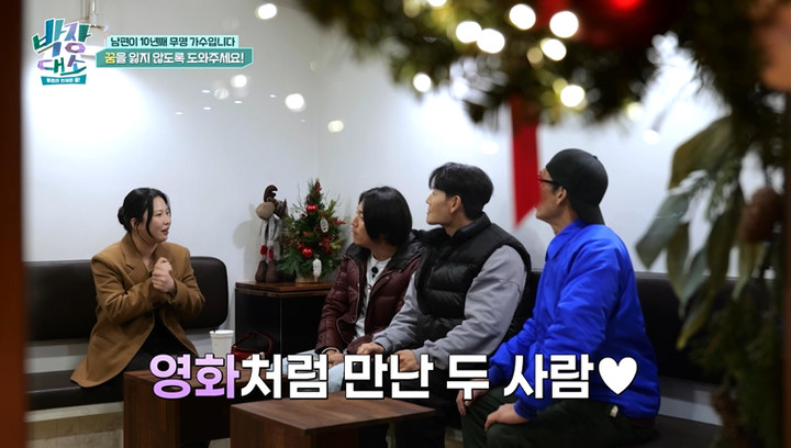 화기애애한 분위기 속 신청자는 “남편이 가정을 위해 가수의 꿈을 접고 일을 하겠다고 하는데 전 남편이 꿈을 버리지 않았으면 좋겠다”고 털어놓는다.