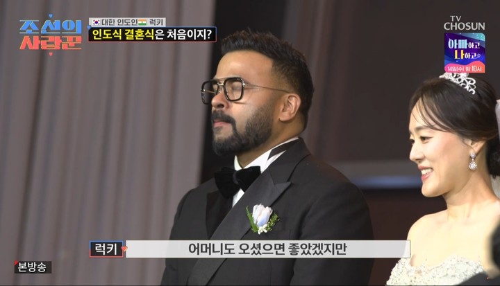 럭키는 눈물을 보이기도 했다. 건강 문제로 인도에서 오지 못한 어머니를 대신해 혼주석에 앉은 친형에게 큰절을 한 럭키는 눈물을 쏟았다. 럭키는 "엄마가 이 모습을 보면 행복했을 텐데. 여러 가지 생각이 나서 감정적으로 올라왔다"고 털어놨다.
